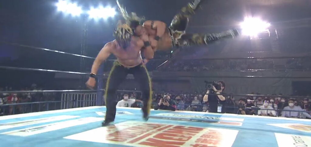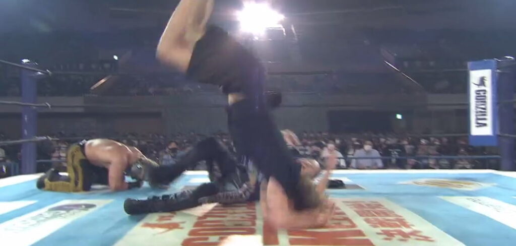 途中で介入してきたファンタズモに対して救援に入った金丸が低空ドロップキック→なぜか脳天から突き刺さるファンタズモというおもしろシーンもありましたが、試合全体としてファンの心に何かが刺さるであろう名勝負でした。