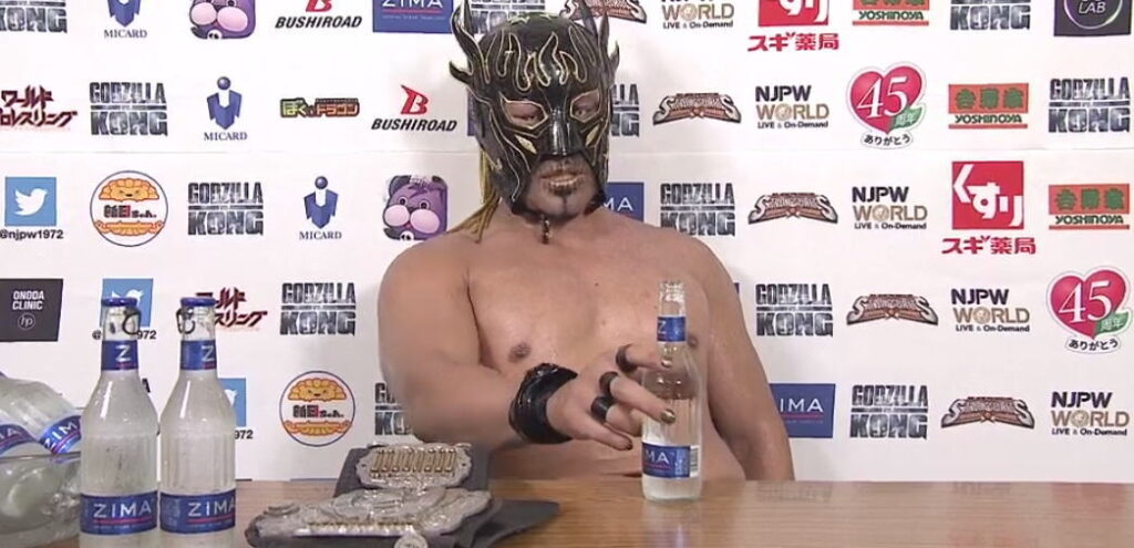 バックヤードではしっかりジーマを飲み、そしてラベルがカメラに向いていないことに気がついてそれを直すなどこの辺りも素晴らしいチャンピオンだなと思いました。
