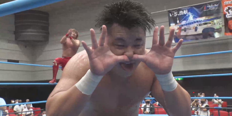 大田区大会では諏訪魔の欠場により急きょの巴戦に出陣した宮原健斗と青柳優馬。