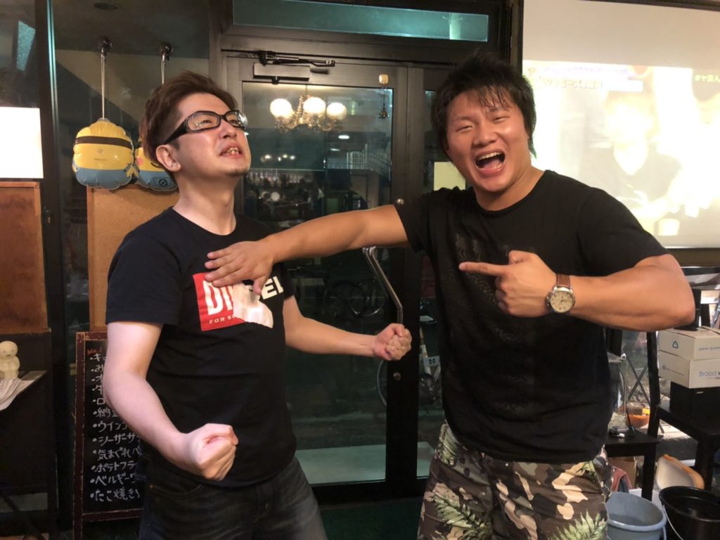 全日本プロレス以前、名古屋のスポルティーバ時代から試合を見ていた選手なのですが今では全日本プロレスで世界ジュニアを手にしたことがある上に現在のアジアタッグ王者ですので少々ビビりながらご挨拶をしたのですが・・・これまた超好青年でプロレス愛に溢れた人だったので、初対面で3時間プロレスの話をしながら飲み続けるという事態に(笑)