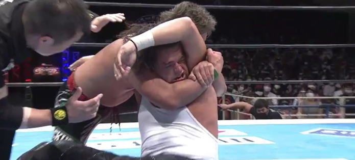 やはりナチュラルにジュースのパワーと荒々しい攻撃に苦戦するYOSHI-HASHIでしたが、YOSHI-HASHIの気合いもニュージャパンカップから続くあの表情に見えました。