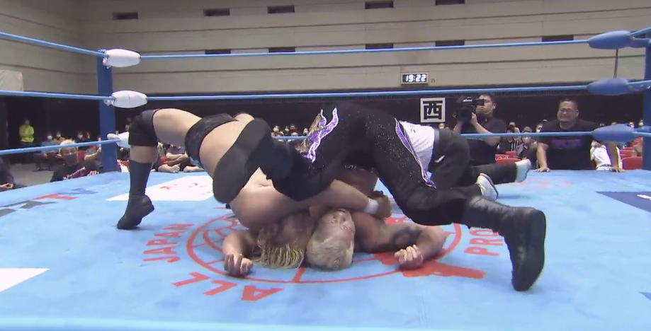 逆にチャンピオンカーニバルを優勝して勢いに乗るゼウスでしたが、そのゼウスは勢いを武器にしつつも関節技&腕極めフェイスロックでじわじわと諏訪魔のパワーを奪いました。
