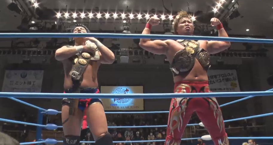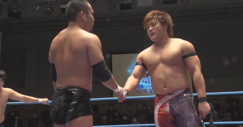 昨年の世界ジュニアで激戦を戦った岩本煌史と日高郁人がドリームタッグを実現させた全日本プロレス開幕戦。
