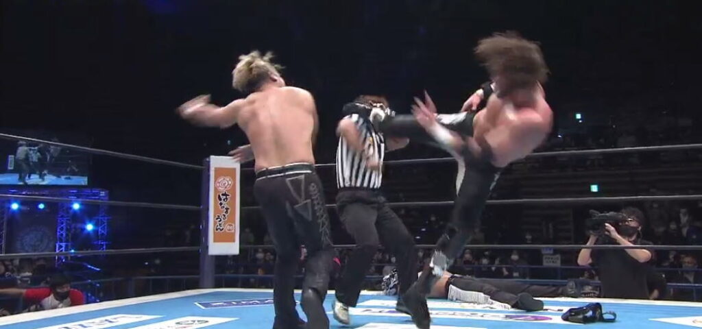 荒れに荒れた試合はお互いに何でもあり&レフェリー災難続きという乱戦状態になりました。
