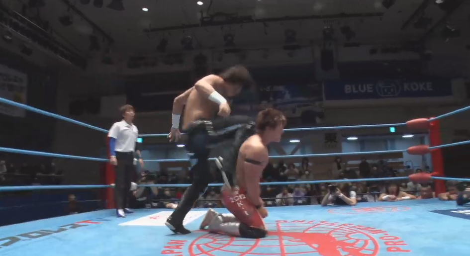 また、この後にはチャンピオンカーニバルを見据えて芦野と睨み合ったジェイクの姿、特に目が印象的でしたが・・・チャンピオンカーニバルが始まるということは岩本煌史が直接的にジェイクとケリをつけるシングル戦まではまだ時間がかかるはずです。