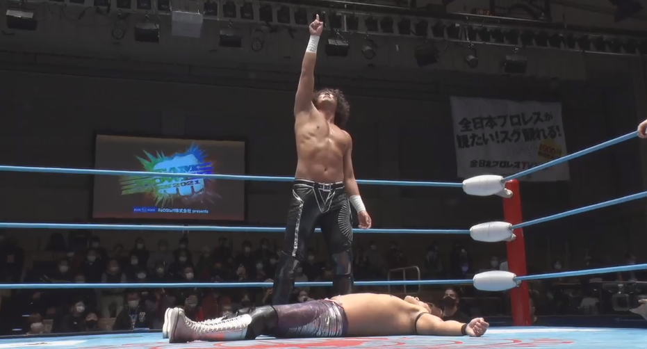 解説席のブラックめんそーれが「太陽を引きずり下ろすような・・・」と表現したことで、このシーンは全日マットに残る名シーンとなったことでしょう。