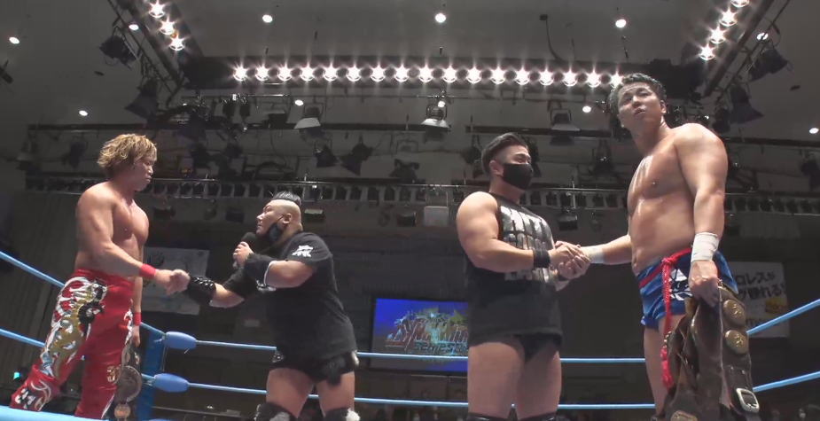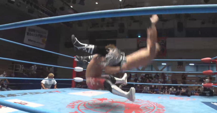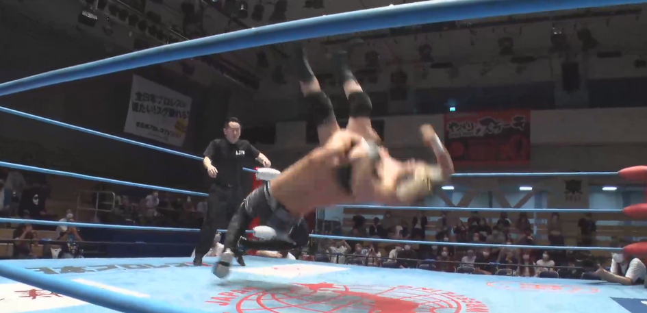 三冠統一の地へ向けての前哨戦でバックドロップで試合を決めるというのは中々面白いメッセージ性がありそうです。