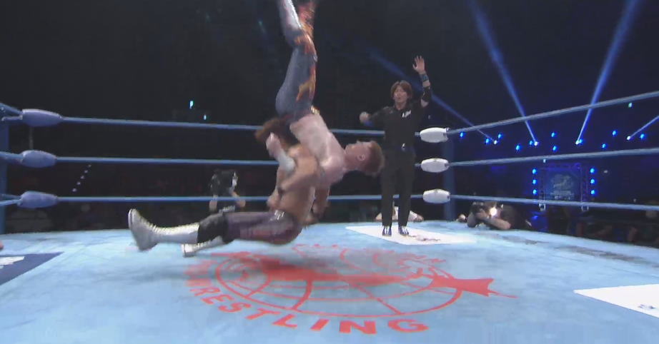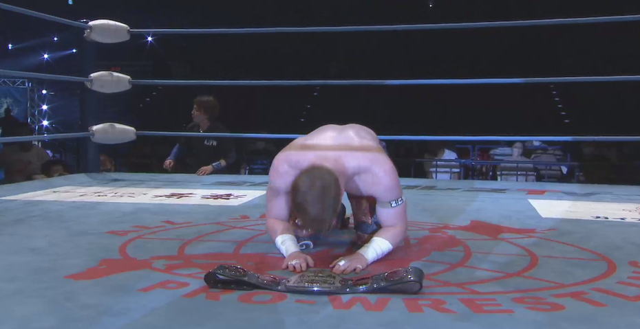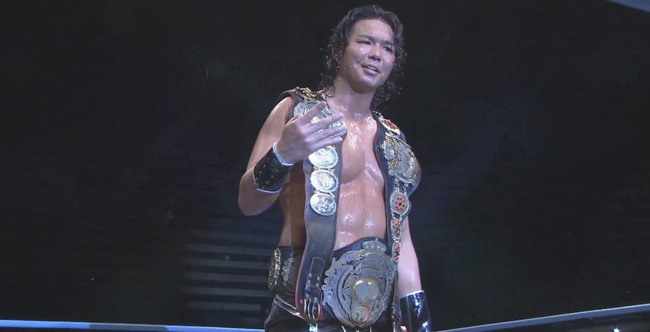 世界ジュニアヘビー級選手権試合はアキラが岩本煌史からベルトを奪取