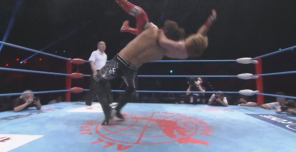 それに対してドラゴンスープレックス、ラリアット、そしてここ最近でもベスト3に入るのではないかと思えるジャーマンスープレックスと叩き込んだ岩本はデンジャラスなリバースゴリースペシャルボムまで繰り出すなど珍しく大技の連発で畳み掛ける。